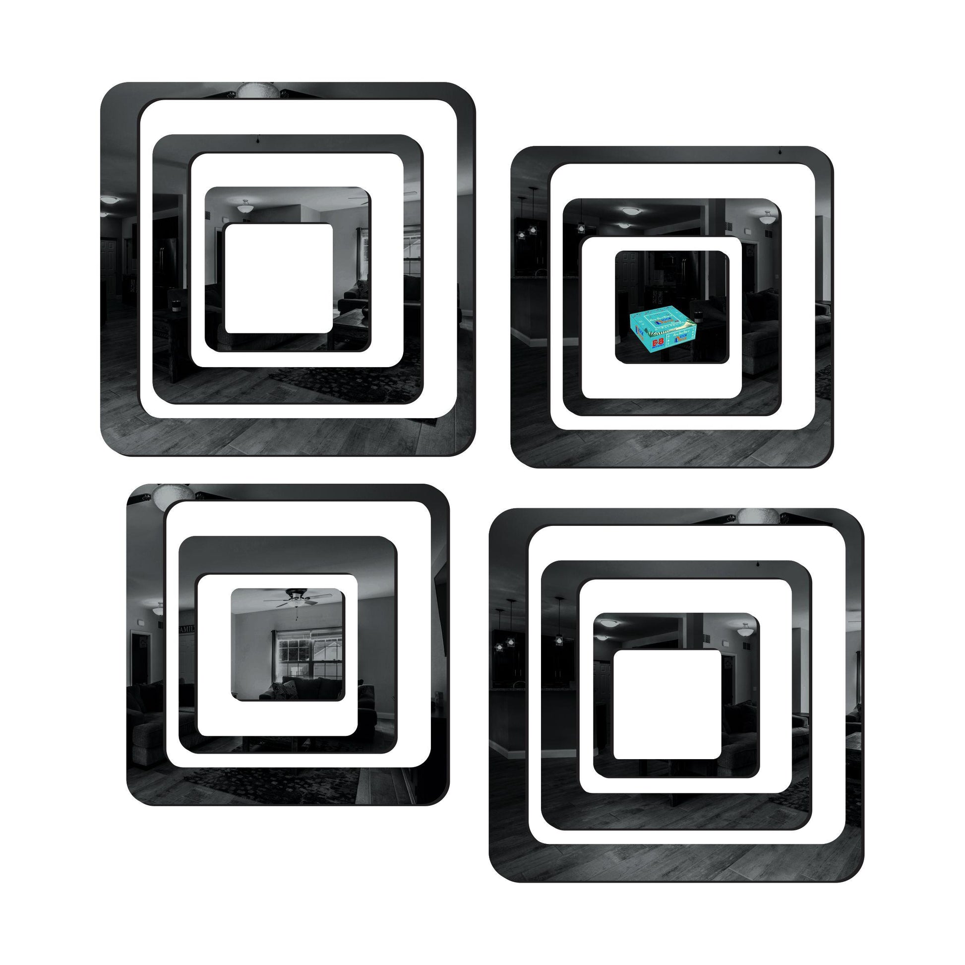 Package Contains: 1 Set of 12 Square Black Acrylic Mirror Wall Stickers